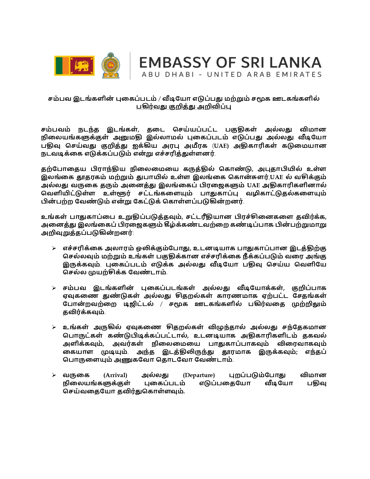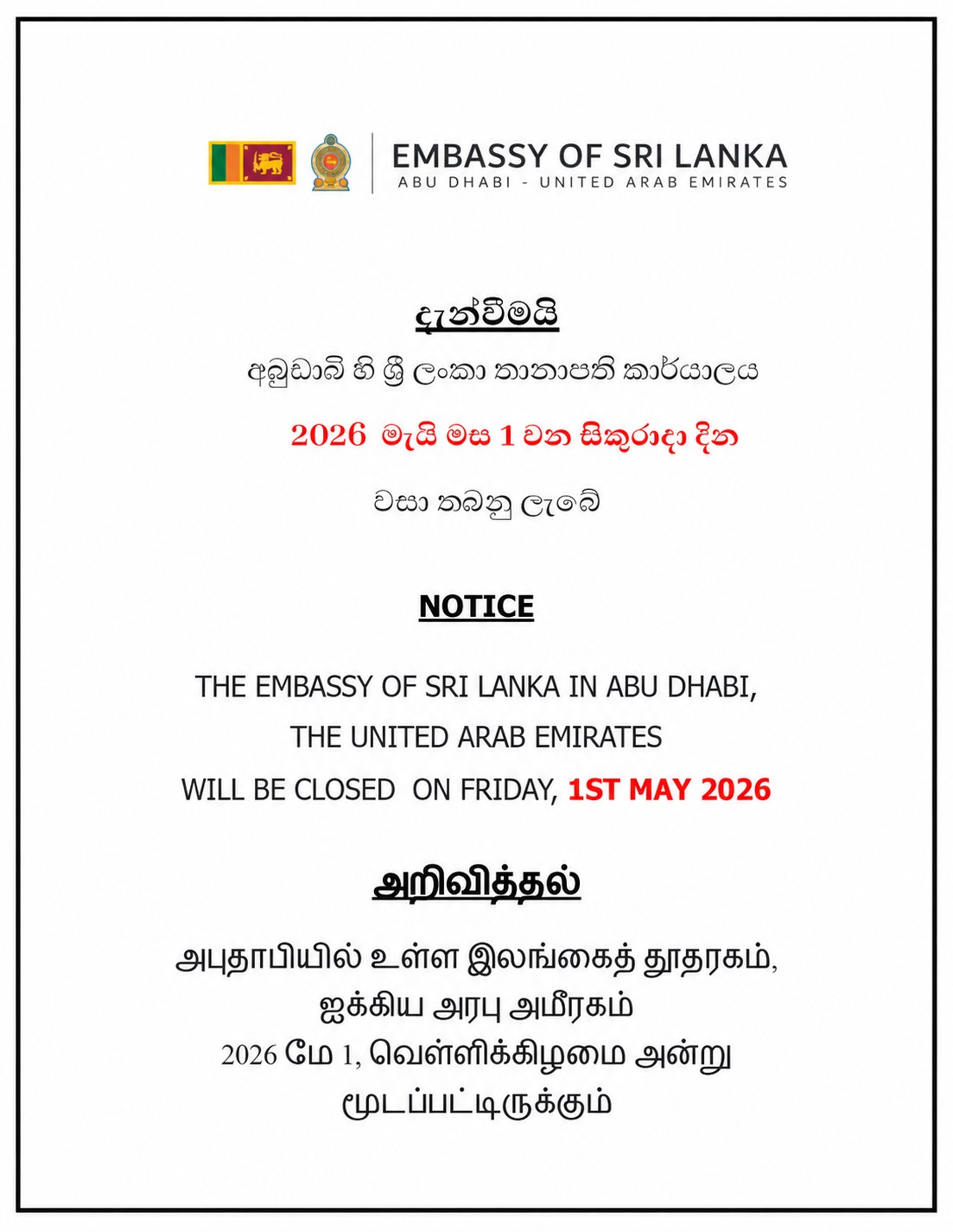 Copyright 2009 - 2025 Embassy of Sri Lanka - United Arab Emirates| All Rights Reserved | Made with Heart at Fixel.